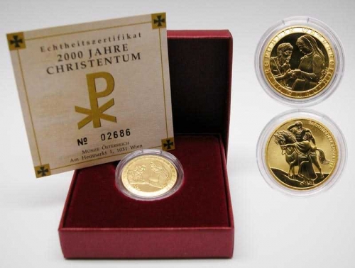 50 евро 2003 года "2000 лет Христианства, Благотворительность", 10 гр.