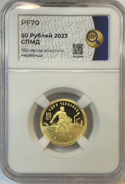 Однако для оборота выпускали не только бумажные деньги. С 1923 года на Петроградском монетном дворе начали выпускать золотые монеты-червонцы, которые по своим параметрам повторяли царские 10 рублей. Их дизайн был разработан медальером Антоном Васютинским на основе эскиза для одной из дореволюционных сельскохозяйственных выставок. На монете в полный рост изображен крестьянин-сеятель на фоне дымящихся труб, плуга и восходящего солнца. Золотых червонцев, датированных 1923 годом, было выпущено чуть более 2,7 млн штук.