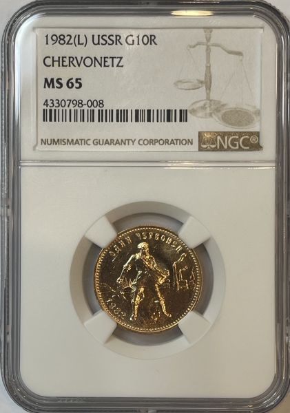 Золотая монета Червонец Сеятель 1982г. ЛМД в слабе NGC MS 65