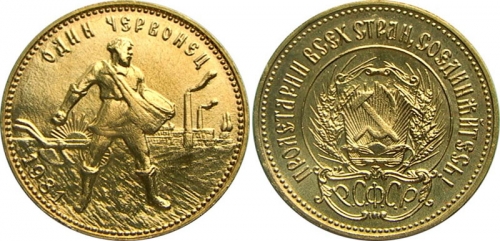 окружности - надписи, обрамленные кругом из точек: вверху - "ОДИН ЧЕРВОНЕЦ", внизу слева - год выпуска (1981).